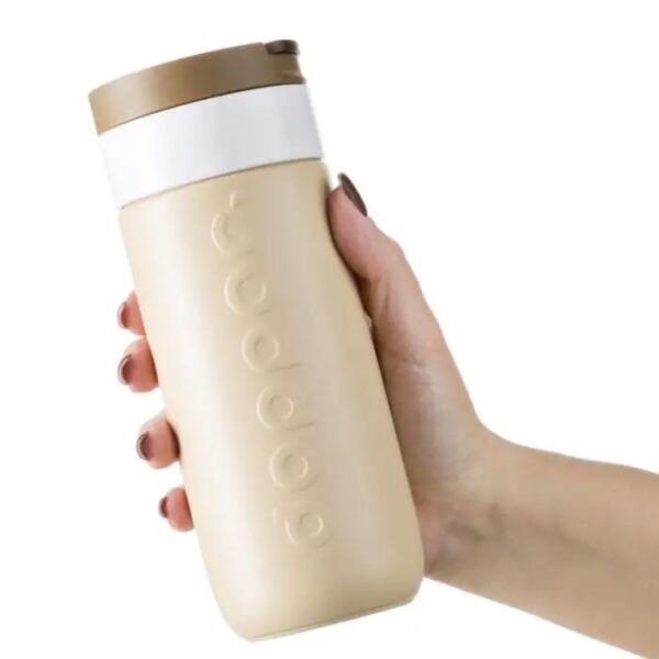 Cafeïne in de ochtend, hydratatie rond het middaguur of een sprankelend gevoel in de avond. Deze Dopper-reisbeker is geschikt voor alles en klaar om overal mee naartoe te nemen. Hij houdt warme dranken warm, koude dranken koud en bruisende dranken bruisend. Geen lekken. Geen gedoe. Geen extra gewicht. En zeker geen afval van eenmalig gebruik. Voorzien van een gemakkelijk te openen flip-dop, houdt dranken tot 6 uur warm en tot 20 uur koud. Gemaakt van dubbelwandig roestvrij staal met 90% gerecycled materiaal, afgewerkt met een duurzame poedercoating. Vaatwasmachinebestendig (zonder opdruk) tot 65 °C. Bij thee of koffie kunnen vlekken of geurtjes ontstaan. Wees voorzichtig met hete vloeistoffen.
